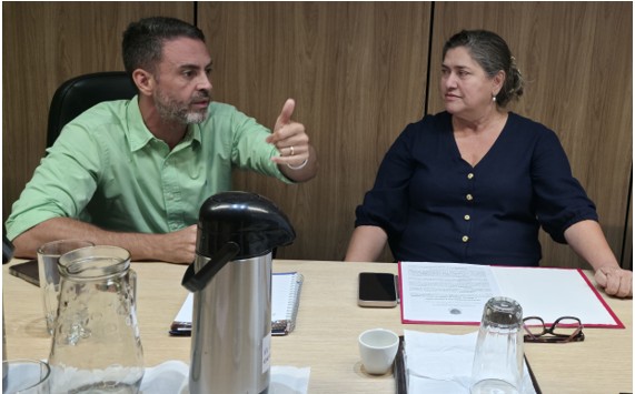 Na oportunidade, foi entregue a Notificação Recomendatória n. 32/2025-GPYFM/MPC, com orientações de controle das cargas horárias dos profissionais da educação.