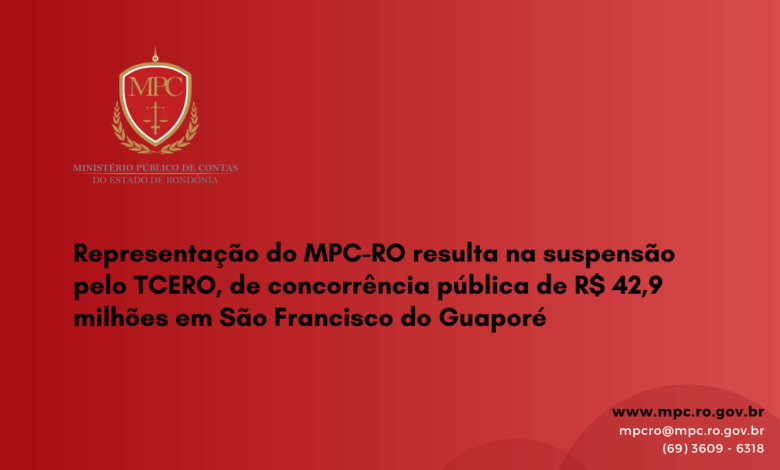 O Tribunal de Contas do Estado de Rondônia (TCE-RO) acolhendo a Representação n. 3775/2025, apresentada pelo Ministério Público de Contas, determinou a suspensão imediata da Concorrência Pública n. 04/2025, promovida pelo Município de São Francisco do Guaporé, por meio da Decisão Monocrática n. 0156/2025-GCESS. O certame tinha abertura prevista para 19 de novembro de 2025 e valor estimado de R$ 42.931.457,47.